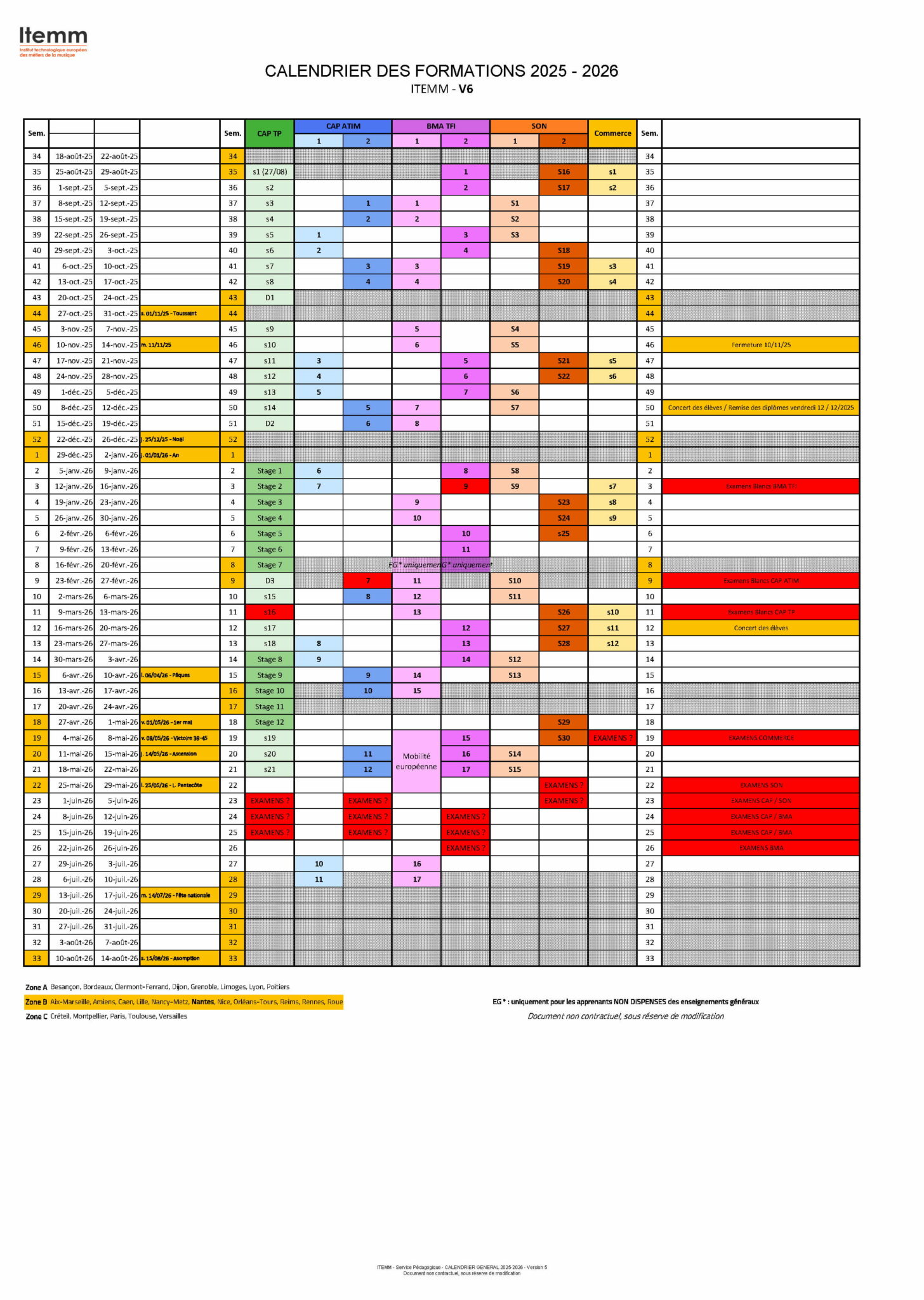Chaque section dispose d’un calendrier et d’un rythme qui lui est propre. Ci-dessous sont présentées les modalités d’alternance et de temps en entreprise principales. Un calendrier précis comportant les dates de regroupement et de congés est distribué en début de chaque année et les emplois du temps de chacun sont affichés en début de tout regroupement.