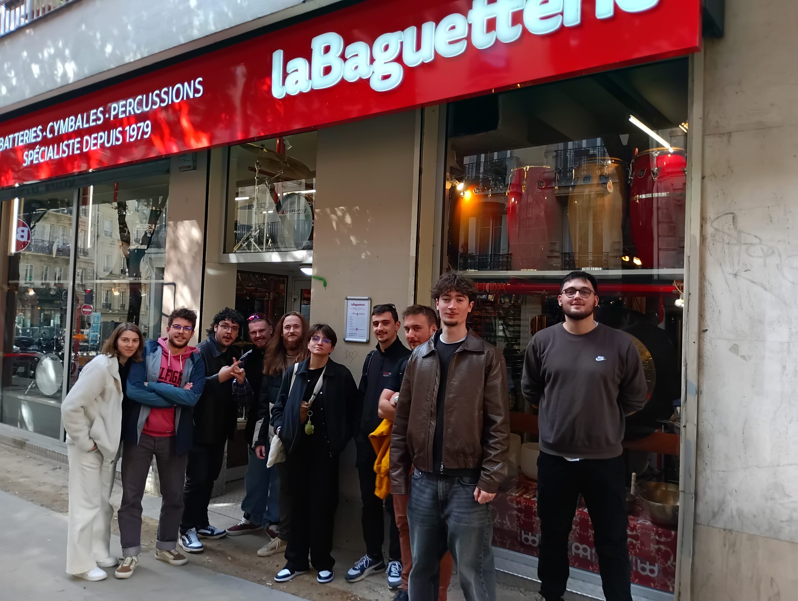 Entre échoppes spécialisées comme la baguetterie, le gaucher, la pedale, saxmachine, et enseignes généralistes comme star’s music, nos apprenants ont pu observer la diversité des acteurs du secteur et mieux comprendre les réalités du terrain.