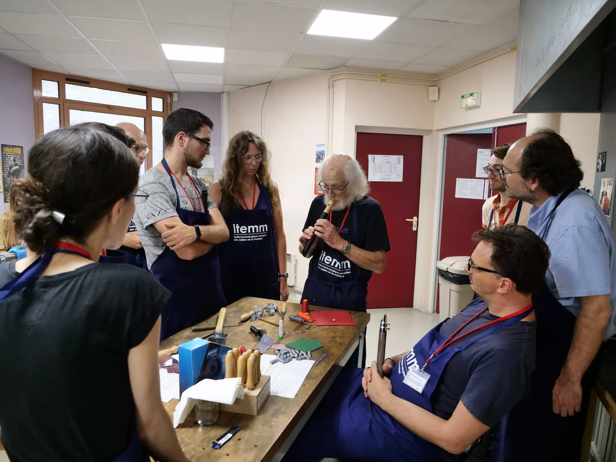 Intitulée “Music, Humanities, and Science: Instrument Making (MuHAS)”, elle a réuni doctorants et jeunes chercheurs et chercheuses, et une équipe d’experts en musicologie, acoustique, des musiciens et des facteurs d’instruments pour une semaine de formation au cours de laquelle ils.elles ont appris, au travers de cours théoriques et ateliers de fabrication et sessions d’expérimentation / interprétation.
