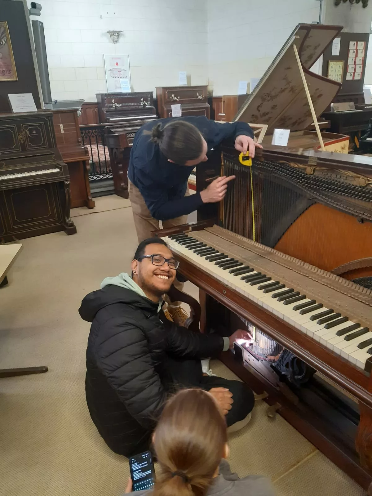 En explorant le Musée du Piano de Limoux, nos apprenants ont eu la chance de découvrir une variété de pianos anciens, de comprendre leur construction et leur fonctionnement. Visiter un tel musée offre une expérience pratique et immersive qui complète parfaitement leur apprentissage à l’ITEM. Ils ont pu également entre autres, réaliser l’entretien du parc instrumental avant l’ouverture de la saison aux visiteurs, établir des constats d’état d’instruments historiques et référencer et classifier la collection. Autant d’activités qui ont offerts à nos apprenants de dernière année, Brevets des Métiers d’Art (BMA) section piano, une expérience pratique et diversifiée, les préparant ainsi à relever les défis du monde professionnel de la facture instrumental avec expérience et assurance.